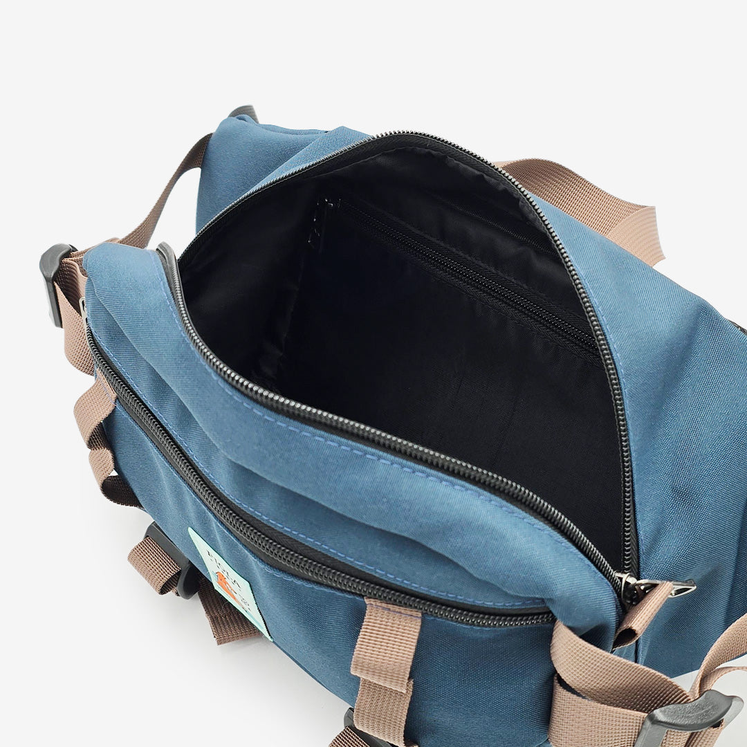 Hecho de lona sintética nylon. Gran capacidad y resistente. Cintas ajustables a los extremos y en la base para mejor agarre. Bolsillos internos y externos para accesorios más pequeños.
