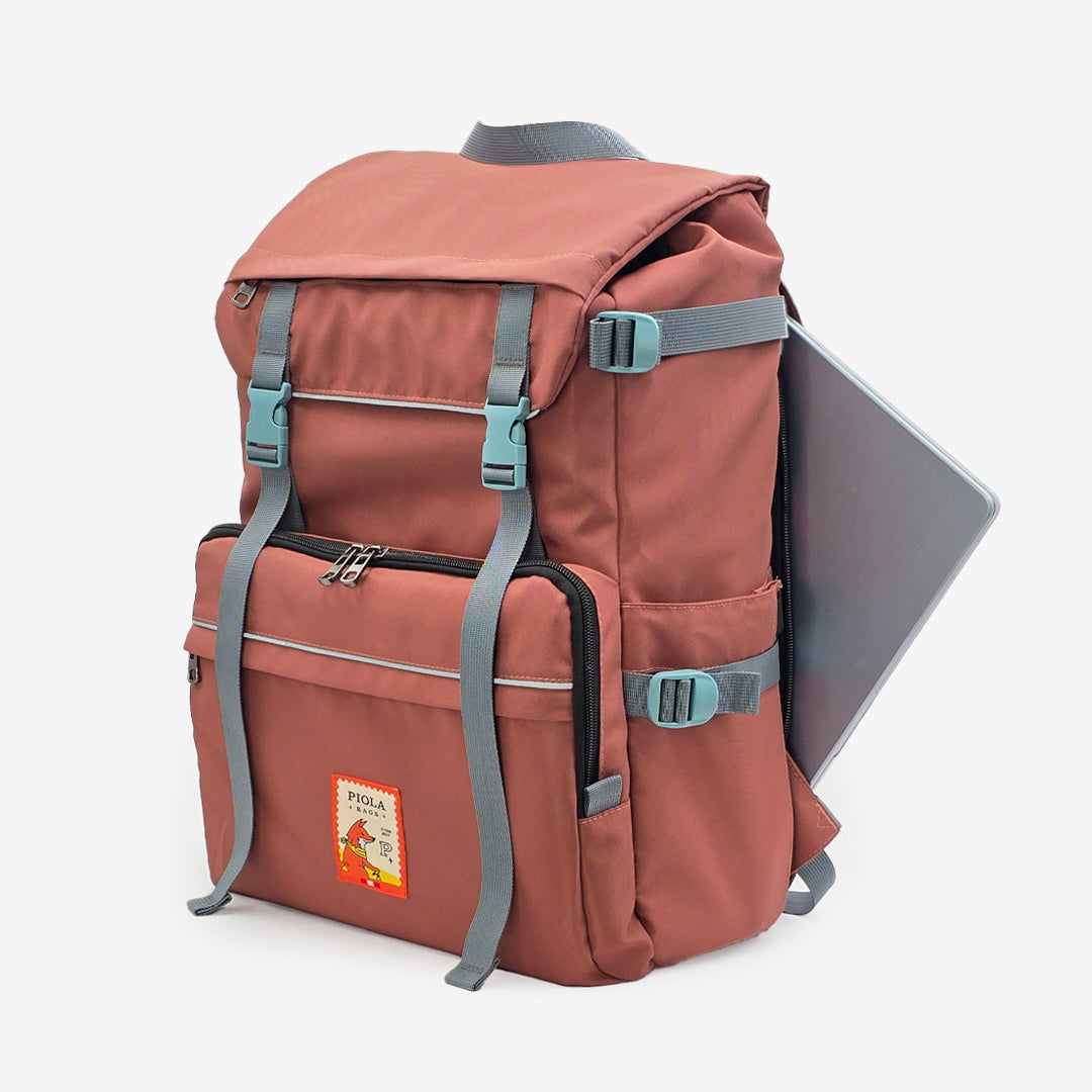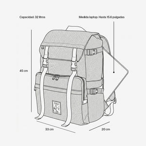 Resistente y espaciosa. Pensada para viajes, con un diseño expansible para hacerle espacio a eso extra. Múltiples bolsillos con buena capacidad y un bolsillo secreto en la espalda para llevar la laptop.