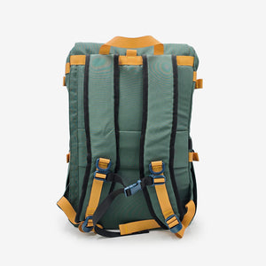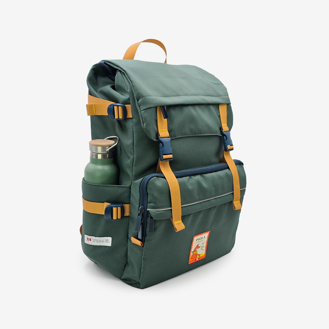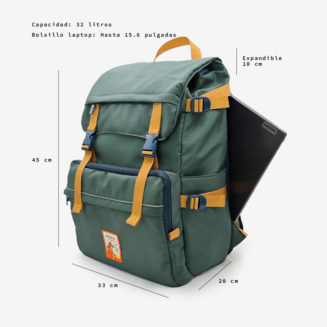 Resistente y espaciosa. Pensada para viajes, con un diseño expansible para hacerle espacio a eso extra. Múltiples bolsillos con buena capacidad y un bolsillo secreto en la espalda para llevar la laptop.