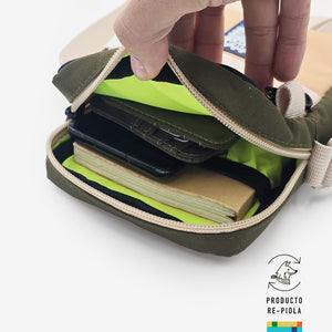 El bolsillo extra que te hace falta. Ligero, práctico y funcional. Úsalo cruzado o al hombro. Guarda tu celular, billetera, llaves, cargador, etc.